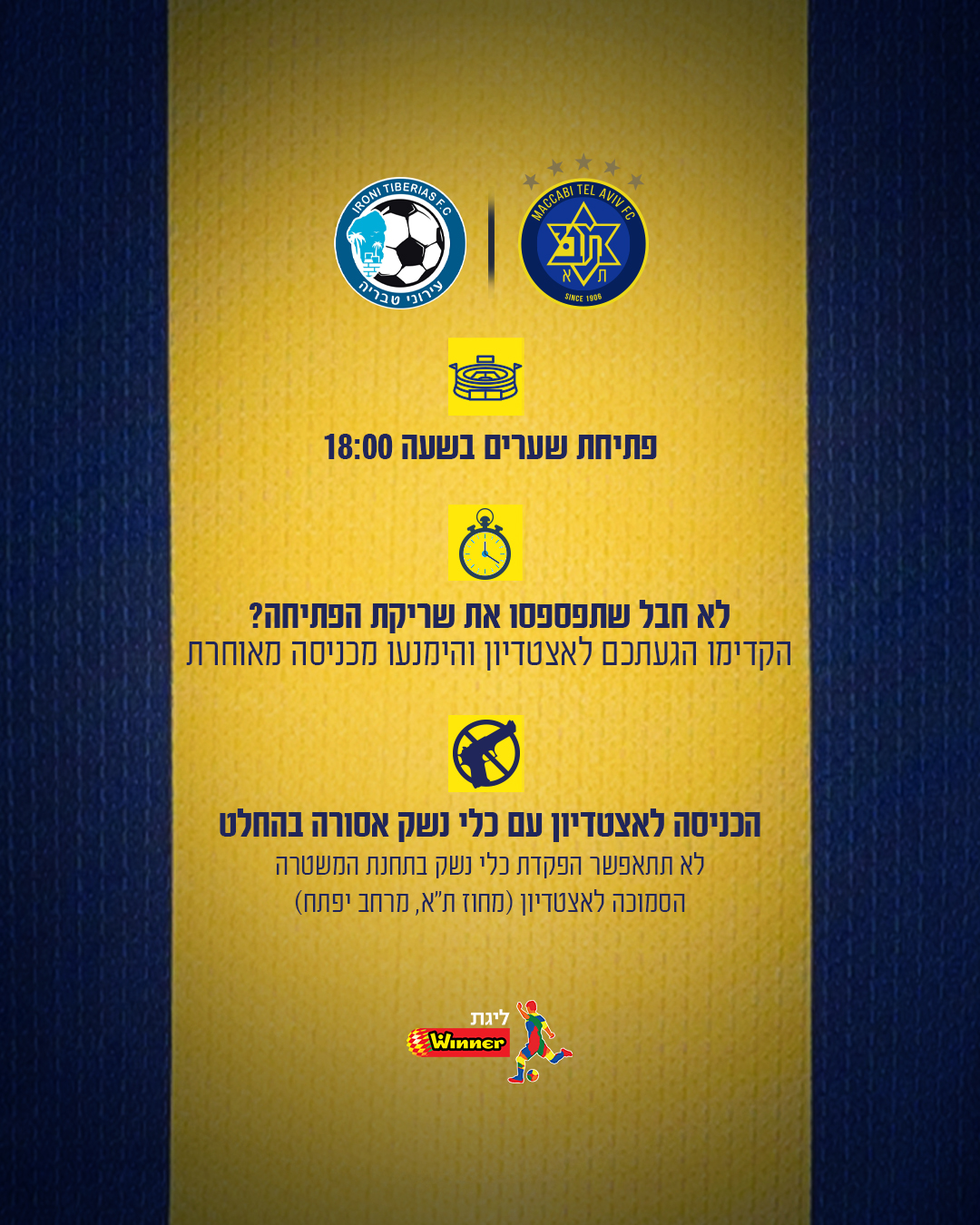 מכבי תמשיך את הופעותיה בליגת Winner כשתארח ביום ג' (30/12) את עירוני טבריה למשחק במסגרת המחזור ה-16. מגיעים לדחוף את שחקני האלופה מהיציע בבלומפילד? הנה כל מה שאתם צריכים לדעת לקראת המשחק.