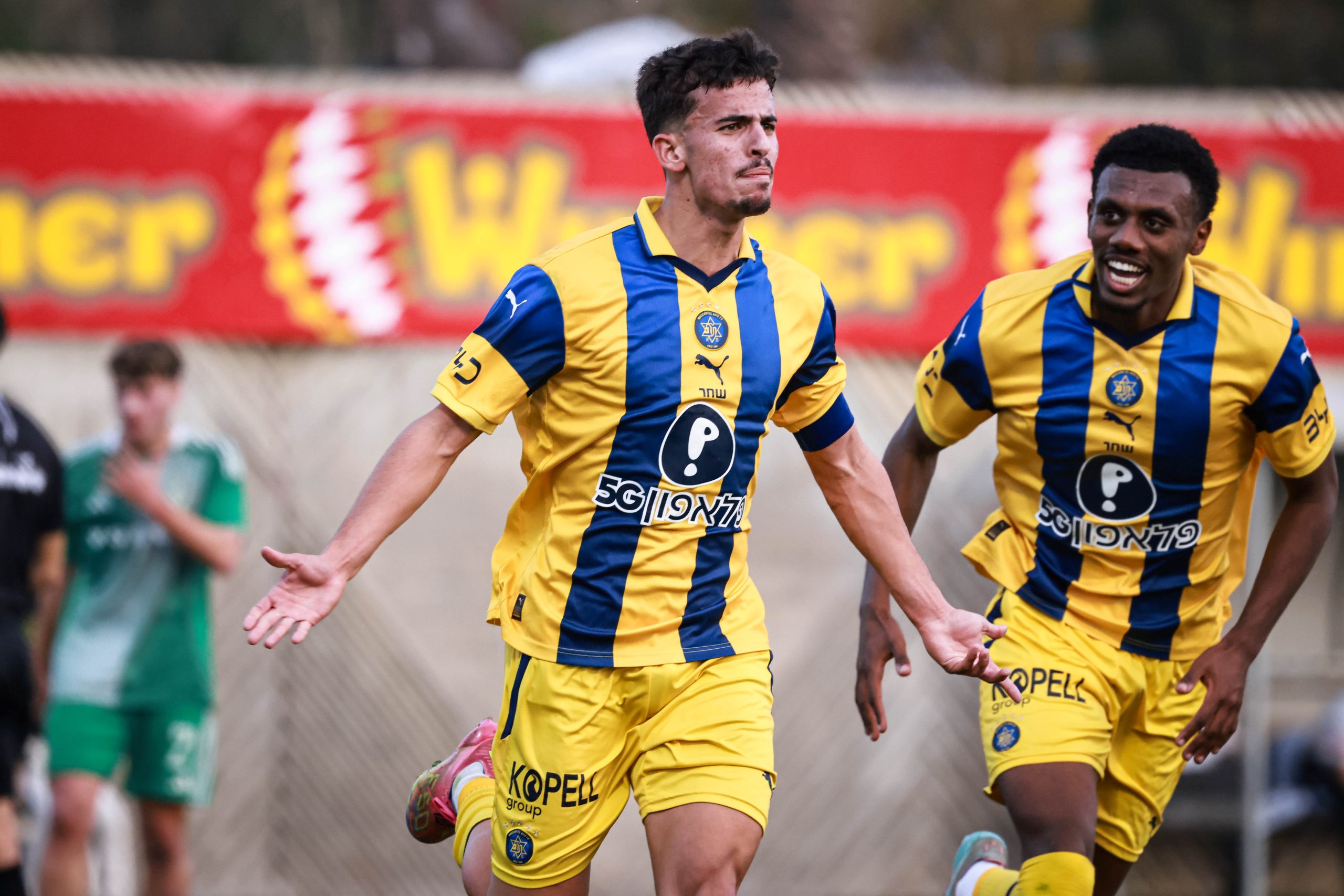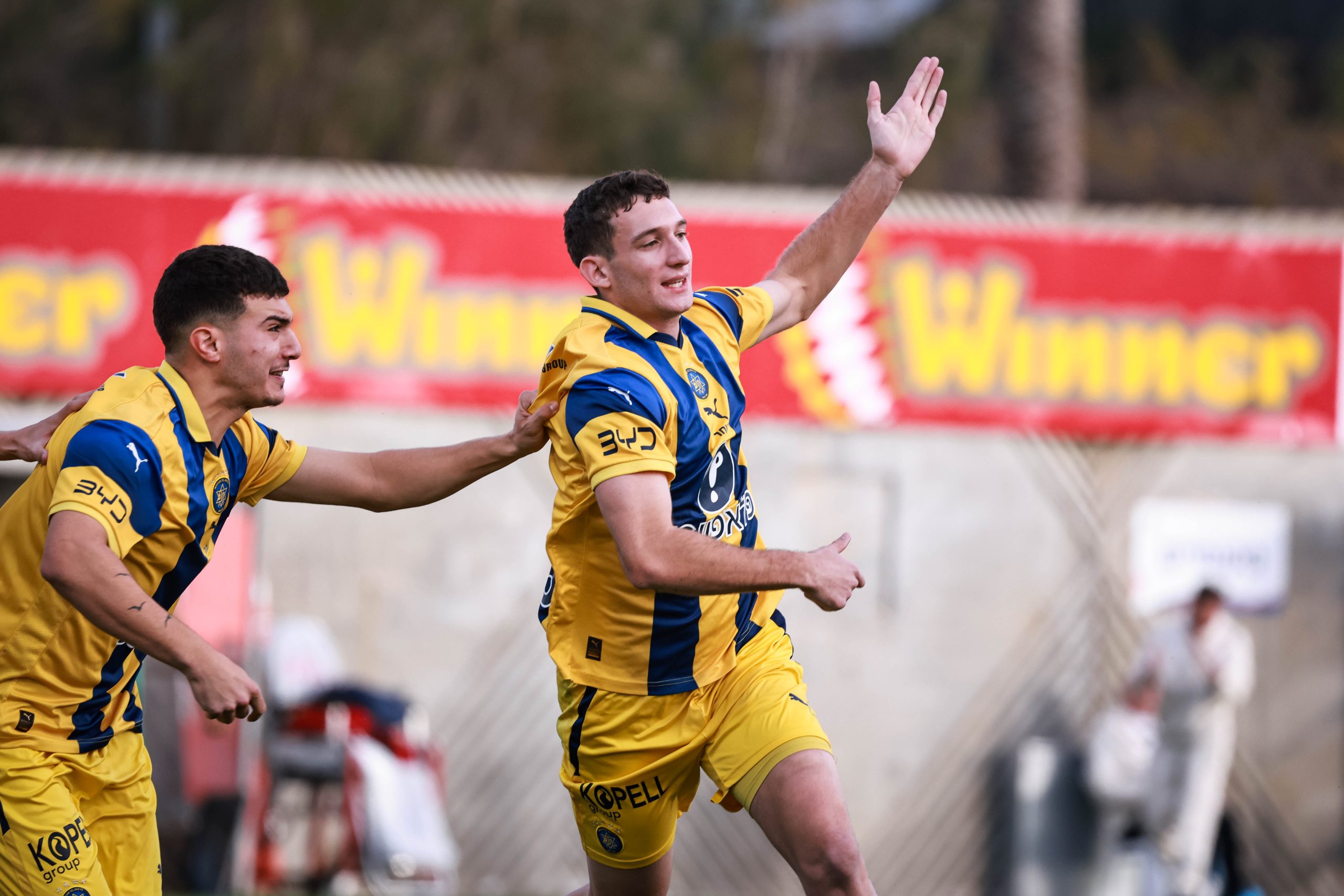 פתיחה סוערת של הצהובים. כדור שחזר מאמצע הרחבה בדקה ה-7 הגיע לעברו של עידן וינברג, שבבעיטת וולה חדה מצא את השער והעלה את מכבי ליתרון מוקדם.