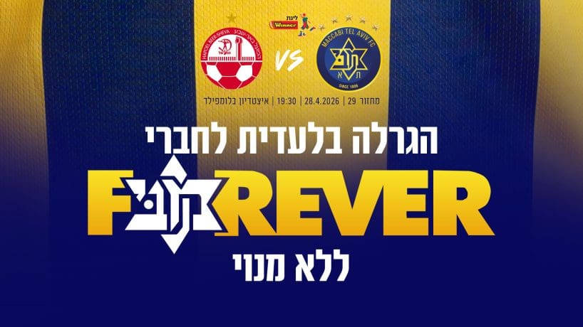 מכבי תל אביב תארח ביום שלישי (28/4, 19:30) את הפועל ב״ש במסגרת המחזור ה-29 של ליגת Winner. אנו פותחים הרשמה לחברי FOREVER ללא מנוי. זו ההזדמנות שלכם לבוא ולדחוף את הקבוצה בבלומפילד!