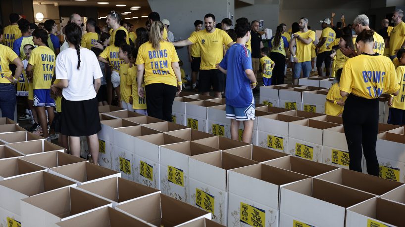 The 'Ahim Lassemel' organization, together with the Maccabi Tel Aviv Foundation, held, with the help of 1,200 volunteers, a packaging day for more than 3,000 food packages ahead of Rosh Hashanah for families in need, in an event dedicated to the victims of October 7th and to those who lost their lives in the 'Iron Swords' War.