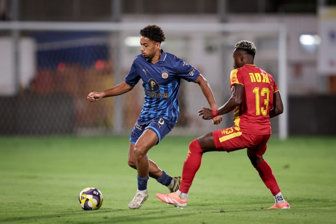 Maccabi arrived at the Yud Alef stadium ahead of the MD11 WINNER League match against Ashdod SC on the back of Thursday’s 6-0 defeat to Olympique Lyon in the Europa League. In the absence of Zarko Lazetic and his coaching staff, Youth Team coach Dan Roman took charge of the team for the match assisted by Avi Rikan and veteran goalkeeping coach Shura Ubarov. Several changes were made to the starting line up with Ofek Melika making his debut league appearance in goal. Itay Ben Hemo made his Maccabi debut at the heart of defense as he partnered Heitor dos Santos as the two central defenders. Noam Ben Harush made his debut league start on the left while Tyrese Asante completed Maccabi’s defensive line on the right.