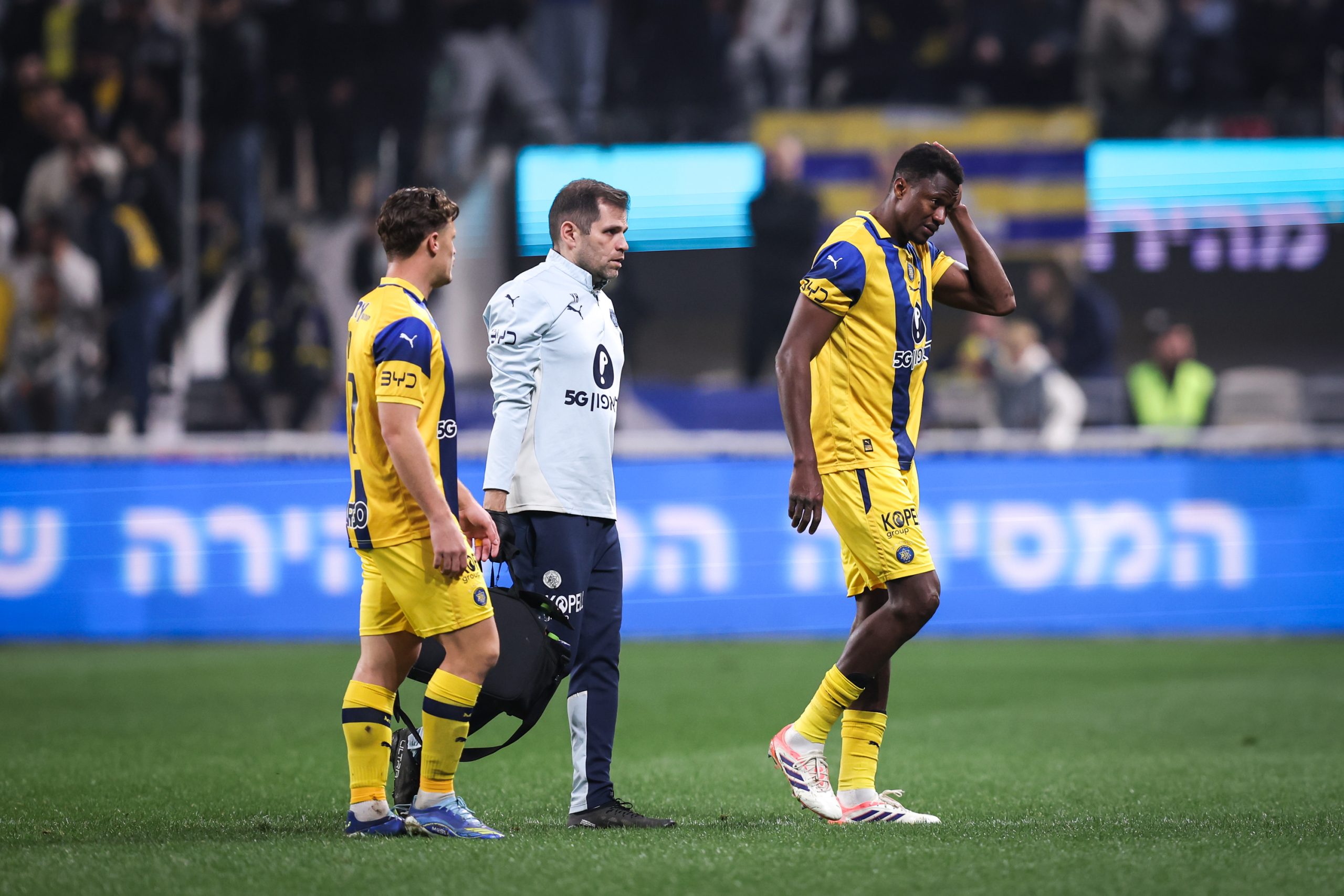 Andrian Kraev was the first player to be booked by referee David Fuxman for a reckless challenge on Saied Abu Farchi in the 14th minute. Four minutes later Ali Camara went down clutching his calf as the tall Guinean defender was replaced by Itay Ben Hemo.