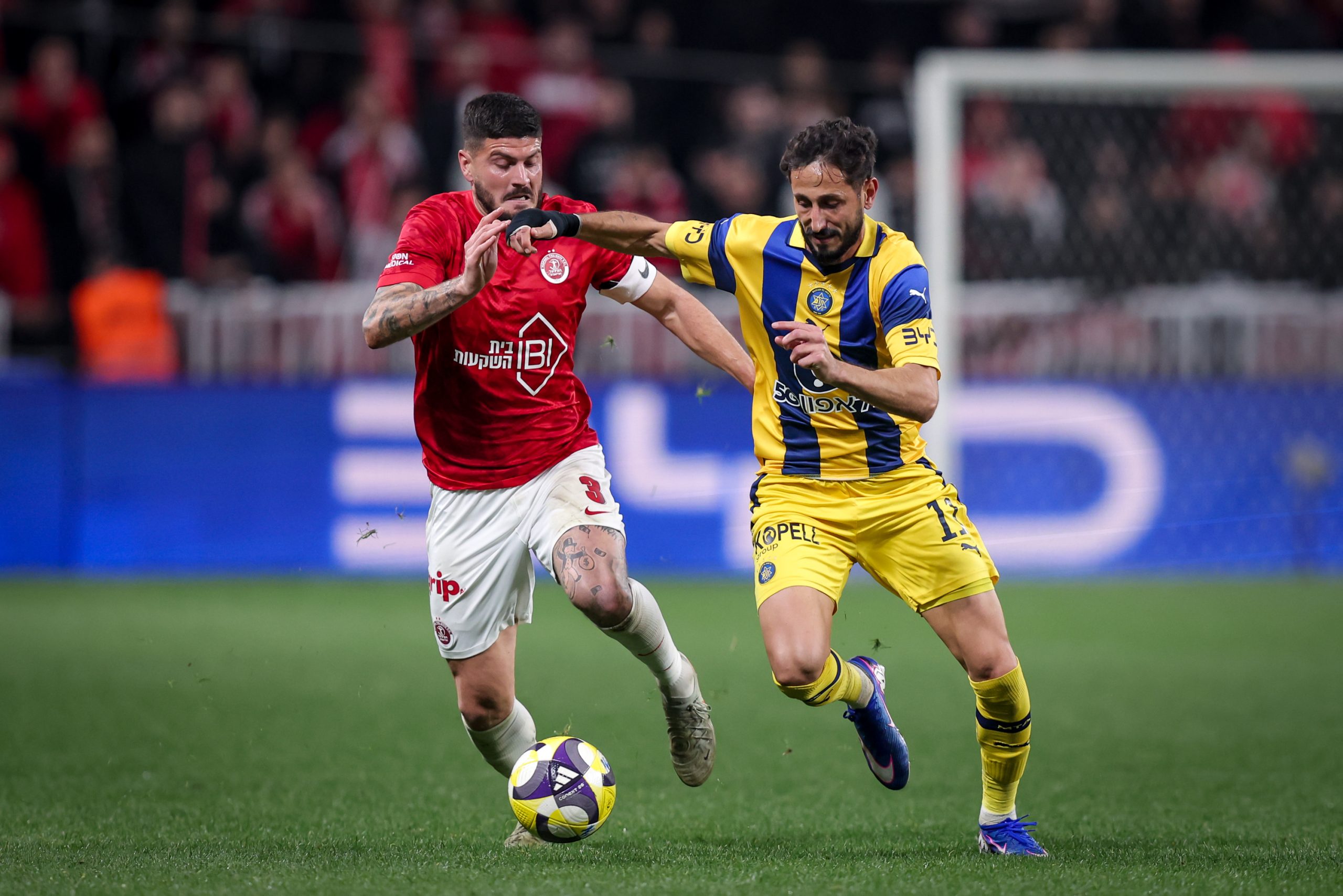 A pyrotechnics display from both sets of fans immediately after kickoff covered Bloomfield stadium with a thick layer of smoke which caused an 8 minute delay. With the smoke eventually cleared off referee David Fuxman resumed play a fact which was welcomed by a stadium which was packed to the brim.
