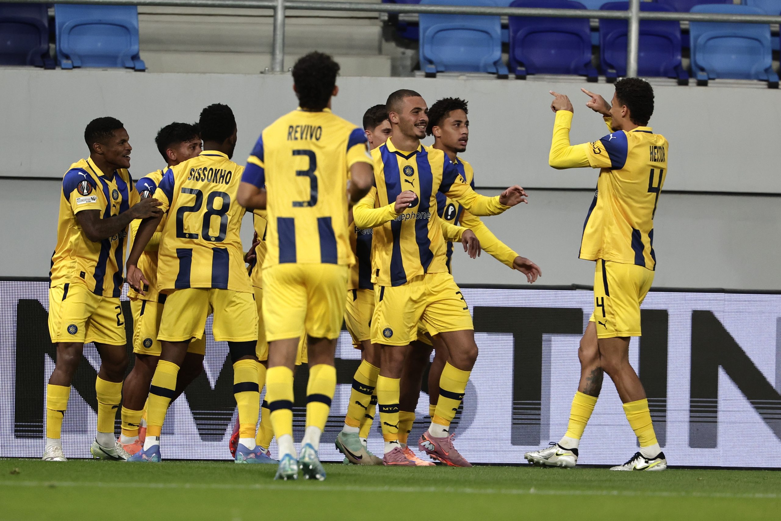 רועי משפתי, שנבחר לאיש המשחק בתיקו באתונה בשבוע שעבר, שמר על מקומו בין הקורות. עלי קאמרה והייטור הוצבו כבלמים במרכז ההגנה של מכבי ורוי רביבו, שריצה עונש הרחקה נגד סכנין, חזר להרכב, כשטייריס אסנטה השלים את חוליית ההגנה מהאגף הימני. איסוף סיסוקו ובן לדרמן שובצו בקישור האחורי, בעוד כריסטיאן בליץ’ קיבל תפקיד התקפי יותר. קרווין אנדרדה והליו ורלה סיפקו את הרוחב במערך של מכבי ותמכו בסייד אבו פרחי, שהוביל את ההתקפה בגיל 19 בלבד, בהופעת הבכורה שלו בליגה האירופית.